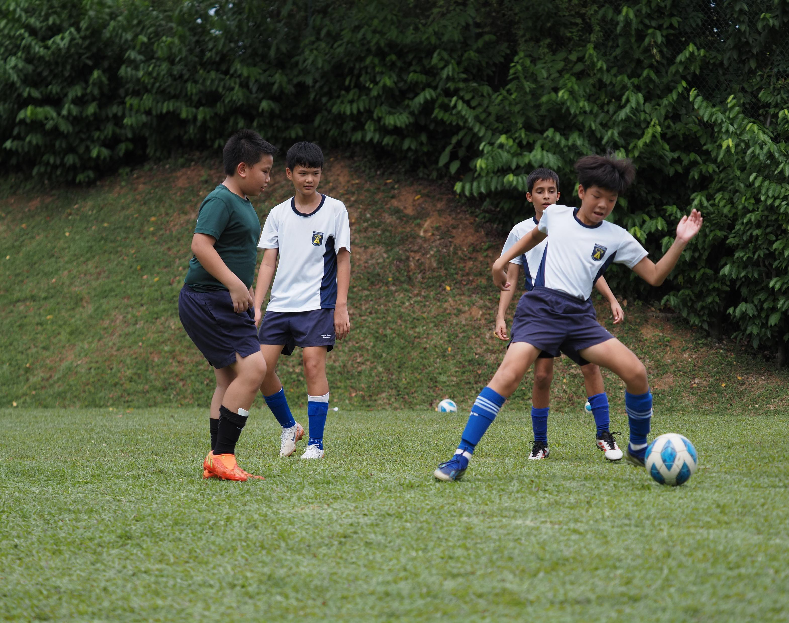 The BTPS Football CCA, Invictus, emphasises discipline, coordination, and purposeful teamwork as students develop ball control and positioning skills, and game awareness.