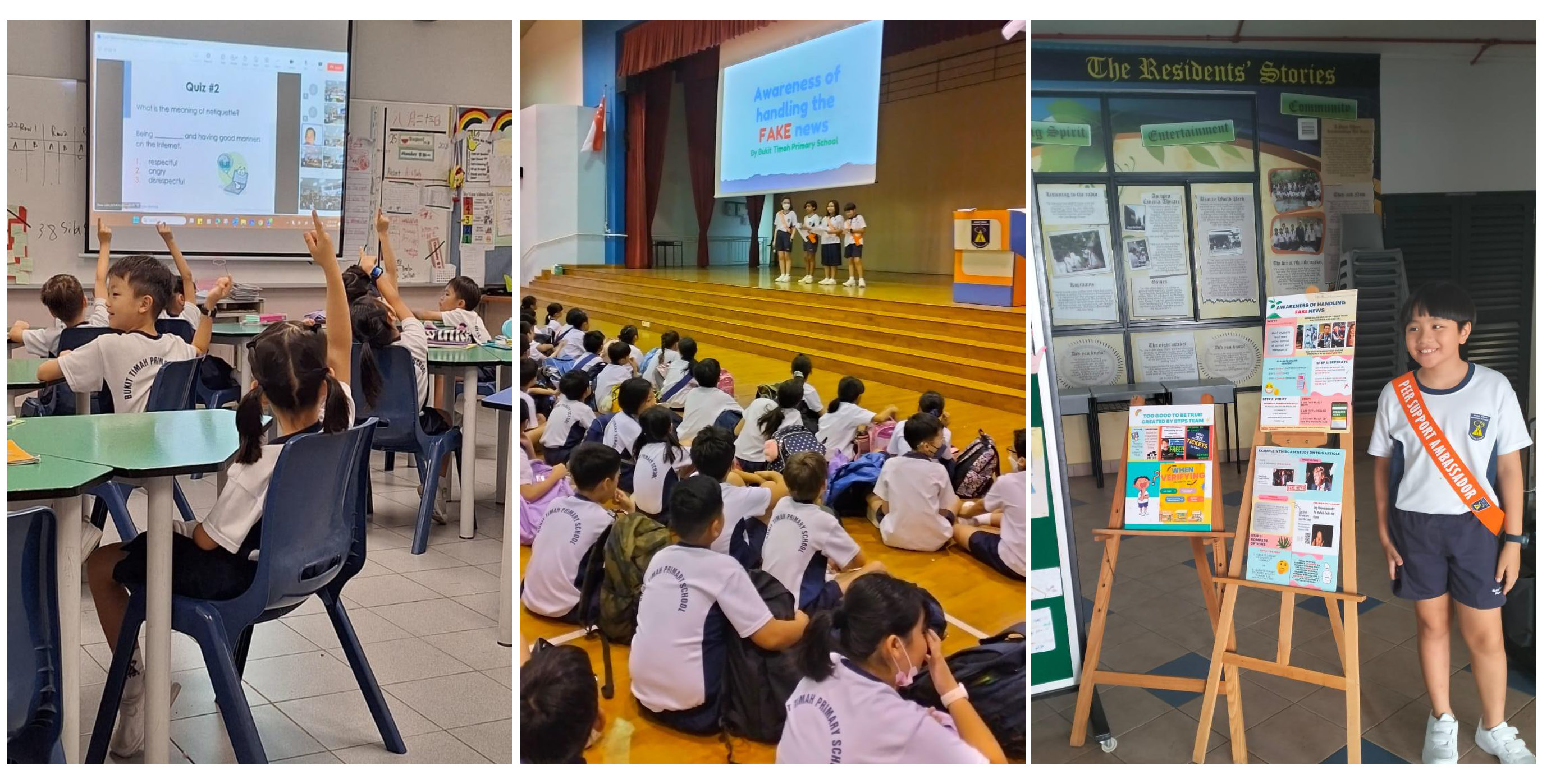 At Bukit Timah Primary School, our Cyber Wellness (CW) programme is anchored in the Cyber Wellness Framework, which provides a holistic and progressive education tailored to our students’ developmental needs and school context. Guided by the three key principles — Respect for Self and Others, Safe and Responsible Use, and Positive Peer Influence — the programme nurtures students to become respectful, safe, and responsible digital citizens who use technology wisely and promote positive online behaviour within their communities. As part of our school-wide approach, Cyber Wellness messages are meaningfully integrated across platforms such as Form Teacher Guidance Period (FTGP) lessons and school-wide assemblies. Through scenario-based discussions, reflective activities, and authentic stories, students develop digital empathy, understand online safety, practise balanced screen-time habits, and learn to make thoughtful and responsible choices in the digital world.