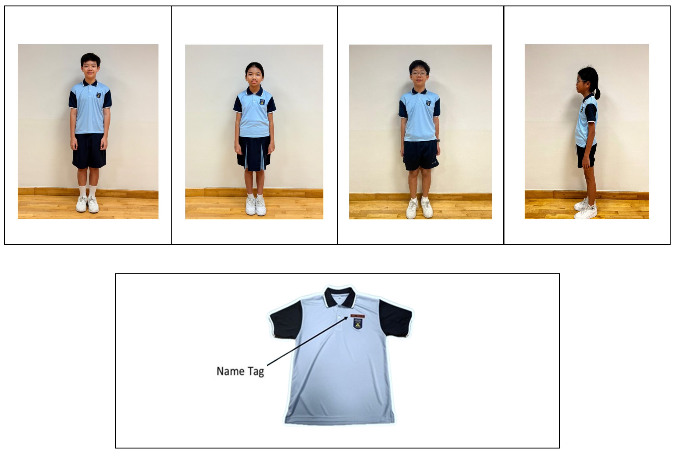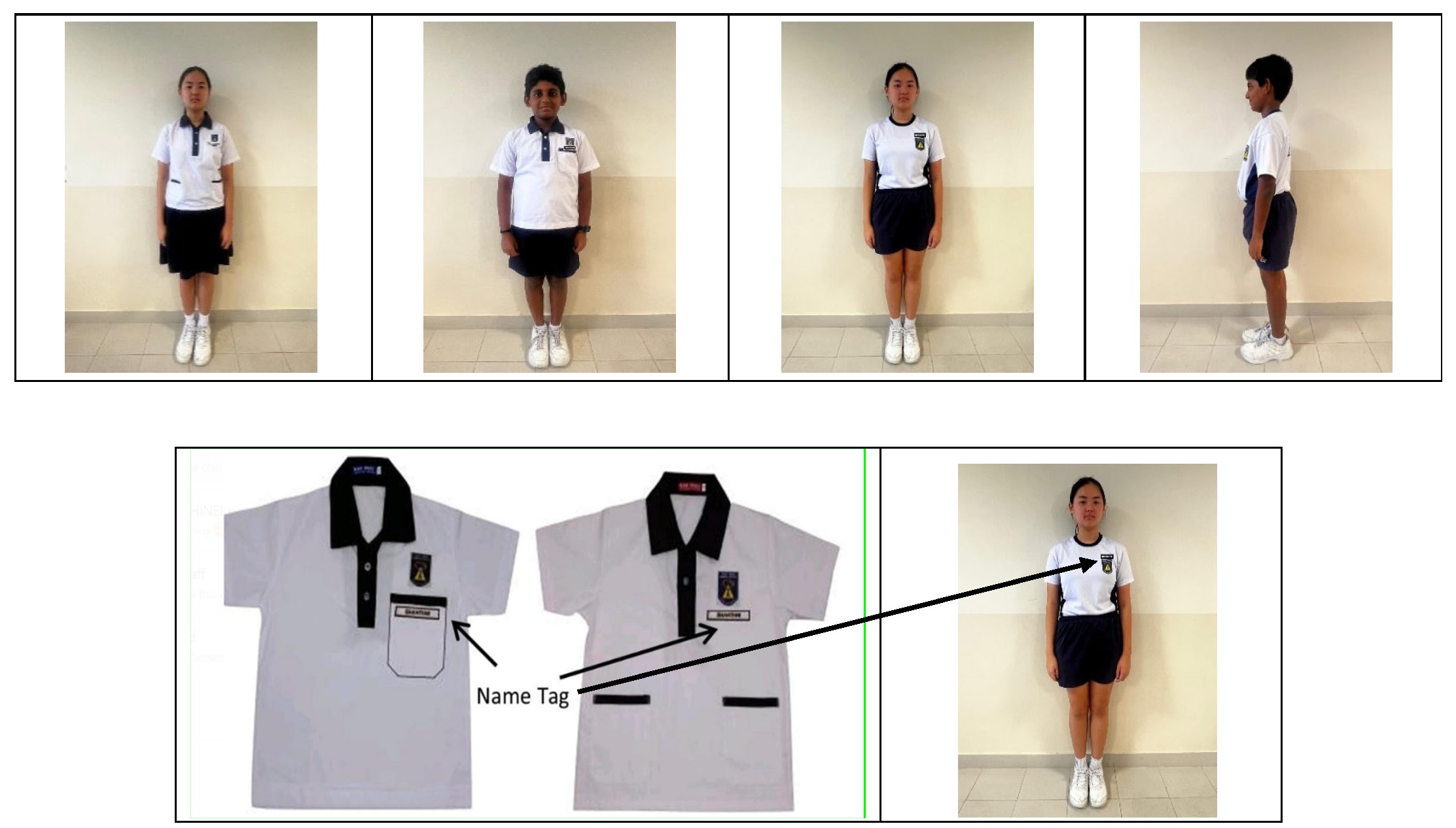 - Name tags should be on both uniform top and PE t-shirt.
