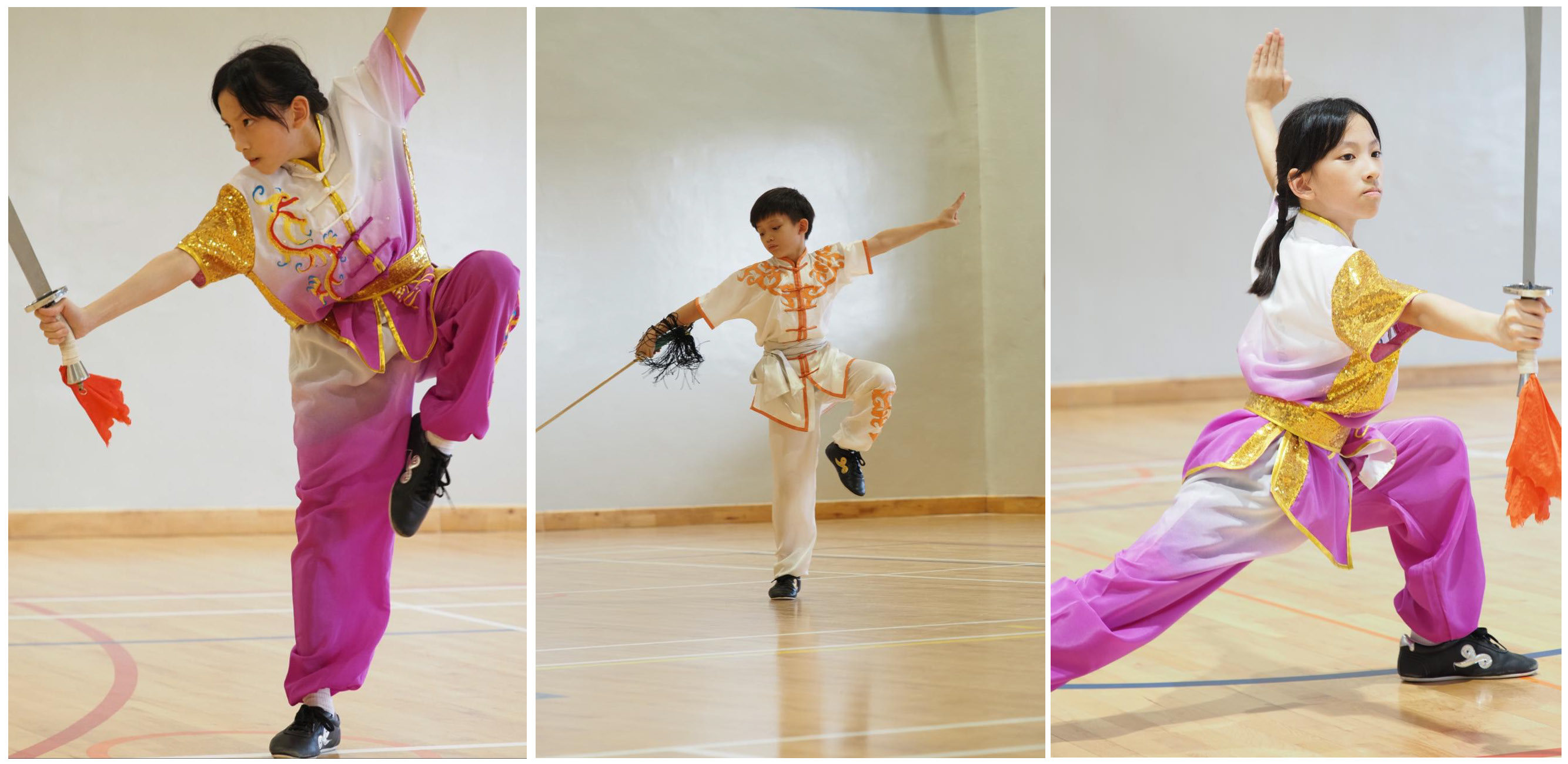 In Wushu, students develop foundational and intermediate skills in both traditional forms and modern routines. Through regular training, students learn a range of techniques, including stances, forms, kicks, and basic weapon handling, while building discipline, focus, and respect for the art.